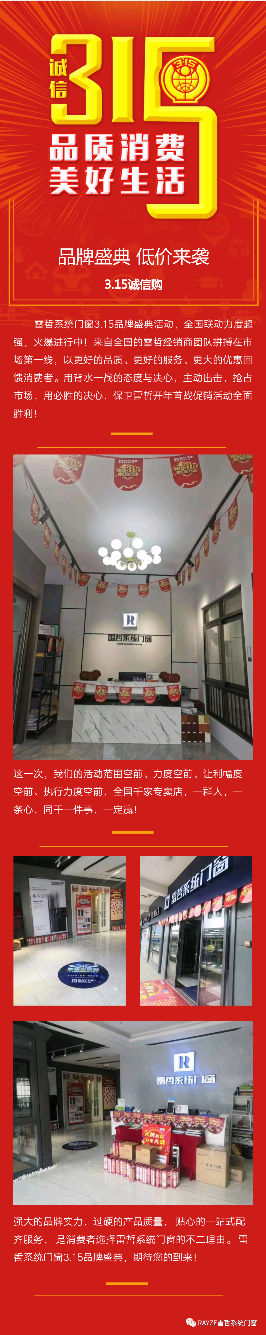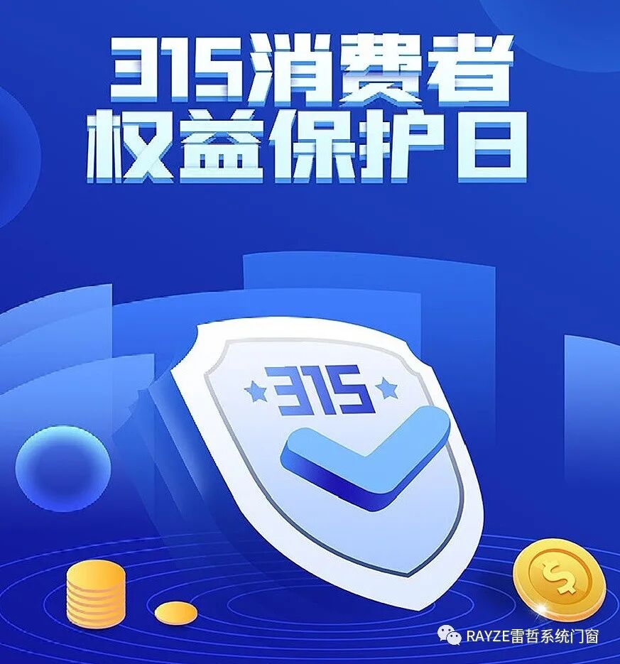 一年一度的315国际消费者权益日来临了,诚信、质量、服务等关键词更备受消费者关注。315维权之际,雷哲系统门窗与广大用户一起,坚决打击假冒伪劣产品,继续用质量与服务践行品牌诚信之魅力,大力维护广大消费者的权益。